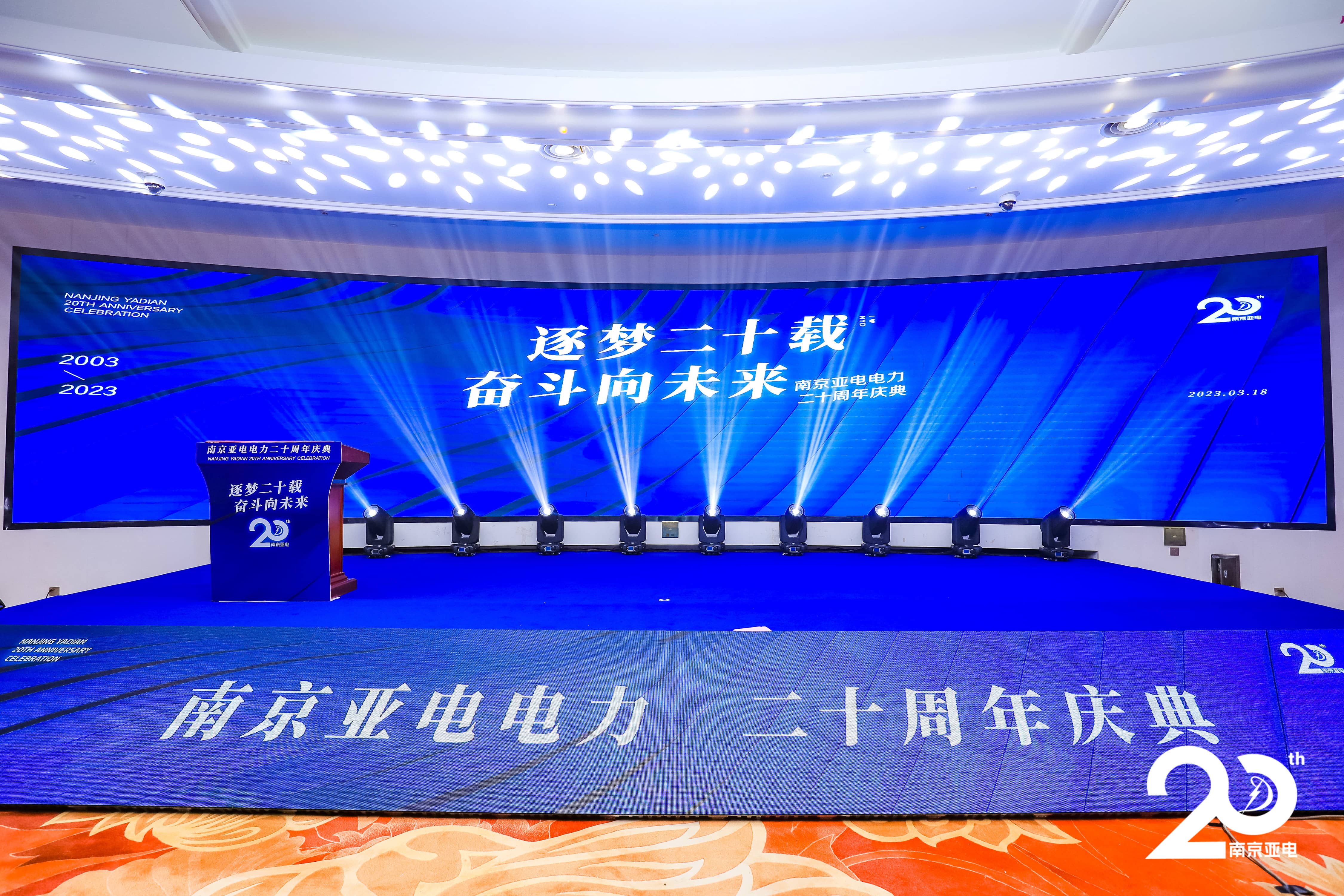 3 月 18 日,南京亚电 20 周年庆典活动在白金汉爵大酒店隆重举行。政府机关领导、兄弟企业领导、合作单位领导、商会领导、全国各地的客户和合作伙伴们与所有亚电人一起齐聚一堂,共同参与了本次盛典。