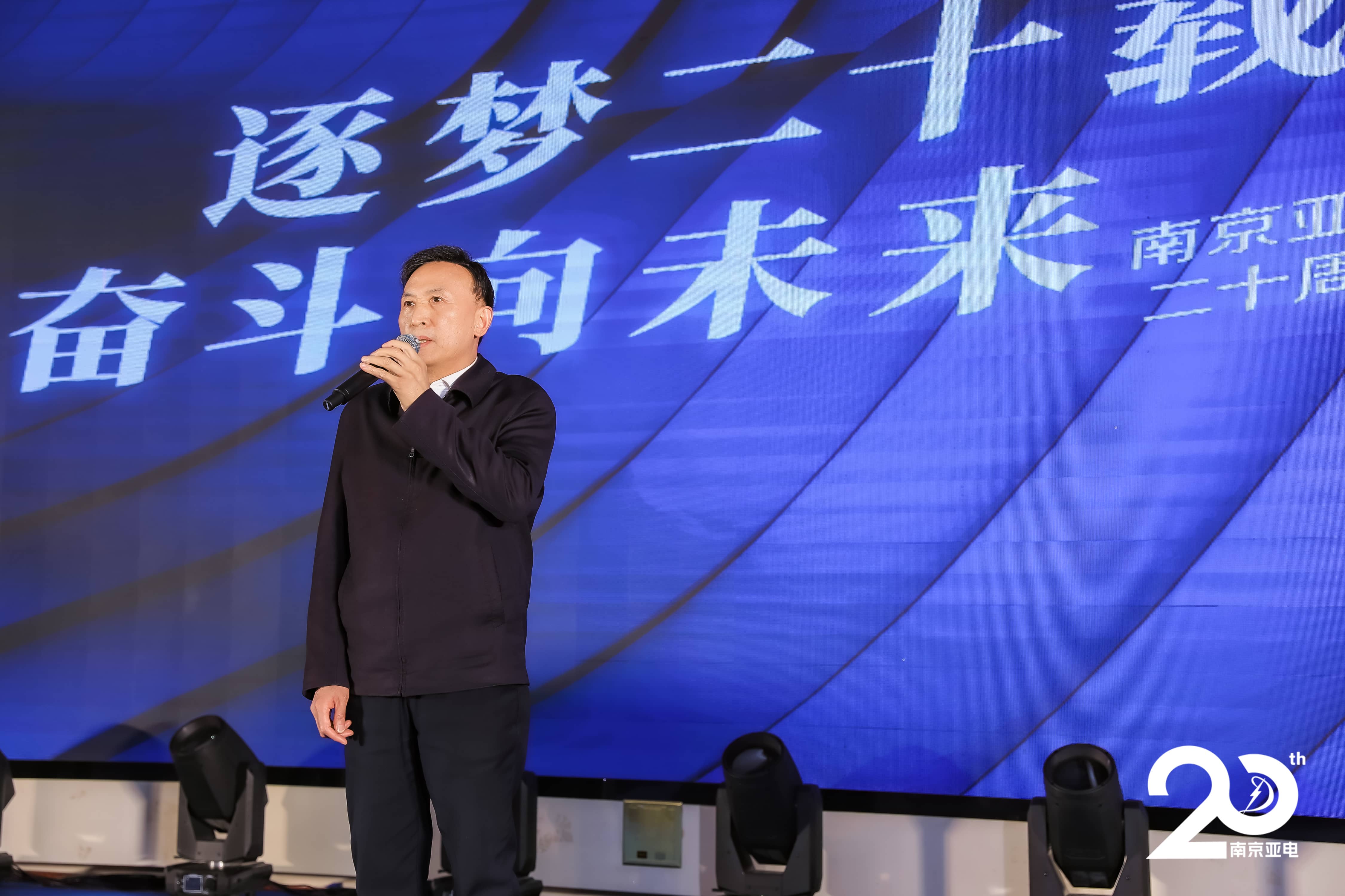 站在 20 年的时间节点上,公司创始人总裁何福建先生在致辞中回顾了南京亚电公司 20 年来的发展历程和取得的成就,感谢所有领导、客户、合作伙伴、员工及家属们在这段历程中的信任、支持和奉献。