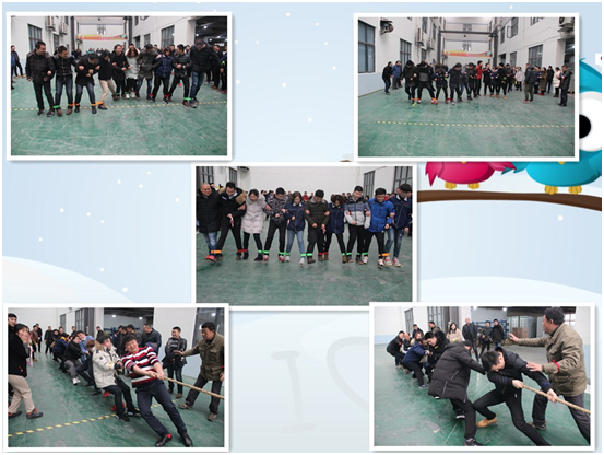 中午十二点半开始趣味运动会,由于时间的关系此次趣味运动会只设了“拔河”和“十人九足”两个比赛项目。虽然只有两个项目,但是也抵挡不了大家的热情,比赛现场气氛热烈,趣味横生。每队员工齐心协力,奋勇争先,观众也兴致高昂,精神振奋,赛场气氛异常活跃。比赛中加油声、呐喊声、欢笑声不绝于耳,大家都本着“友谊第一,比赛第二”的会场精神,互相加油鼓劲儿,运动会场沉浸在一片欢乐和谐的氛围中。